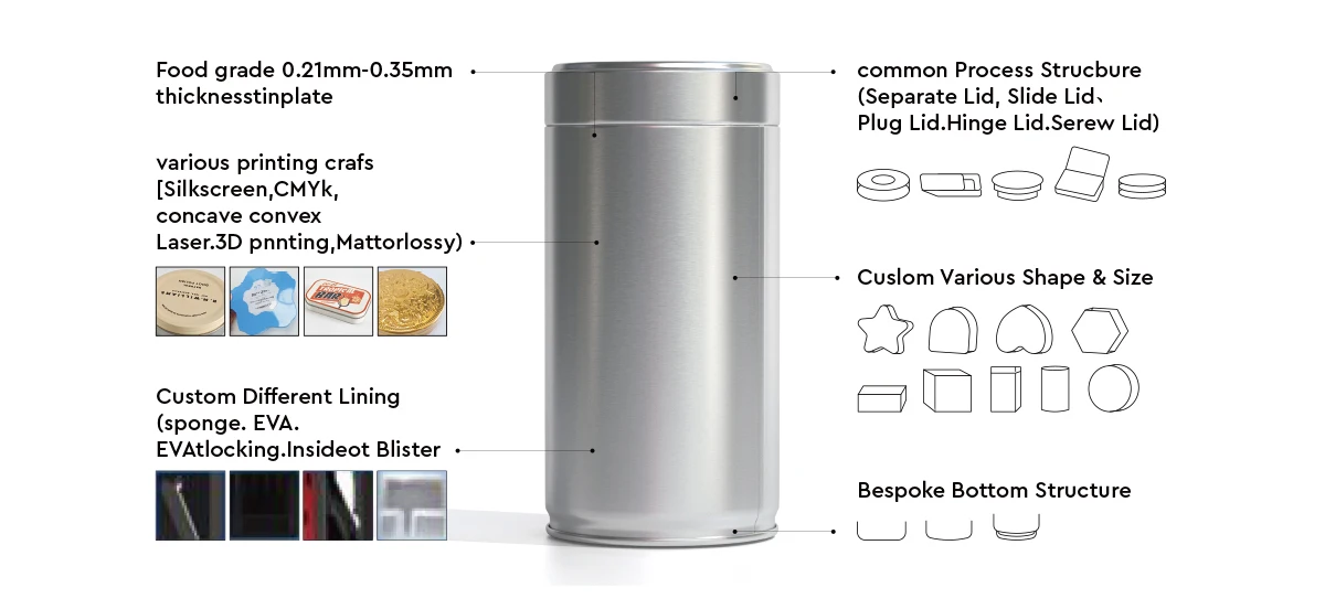 Productos principales:Lata de metal, caja de lata, contenedor de hojalata, tarro de lata, lata de metal