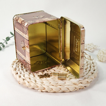 Hình dạng vuông trang trí đám cưới tinplate kim loại hộp quà tặng có thể tái chế sắt giáng sinh tin có thể tiền ngân hàng lưu trữ cho nghề sử dụng